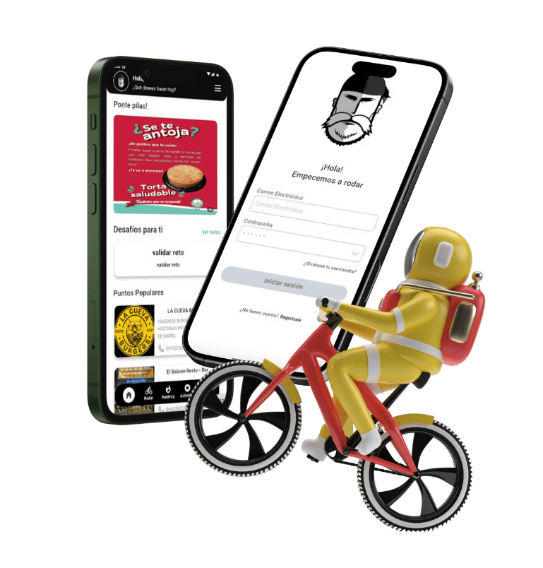 Nuestra app te permite medir tu huella de carbono de manera sencilla y efectiva, proporcionándote estadÃsticas detalladas que reflejan el impacto de tus decisiones cotidianas. Cada pedalada cuenta y, al compartir tus logros con la comunidad, recibirás recompensas por tu contribución al medio ambiente.